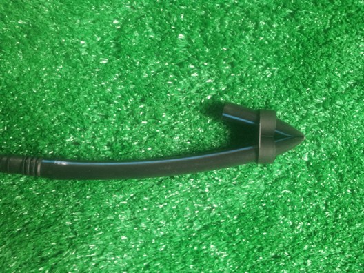双环折堵安装在PE管或滴灌管的末端,管材从双环折堵的一个环形孔内穿过,再从另外一个孔内穿出,之后稍微用力拉紧即可。