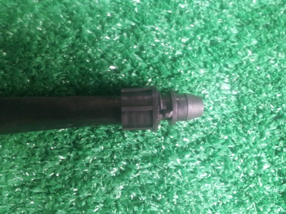 2.将修建好的滴灌带插入锁母接头的缝隙内。