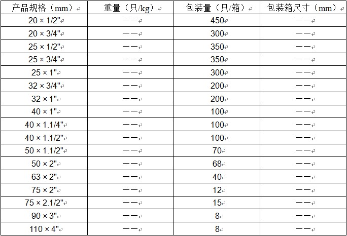 其中“ΦD”表示管件公称内径,“Φd”表示管件丝口直径,1.0Mpa=10公斤
